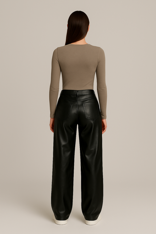 Pantalón en cuerina negro de tiro alto Ajustado con cierre frontal – Define tu cintura y levanta la cola