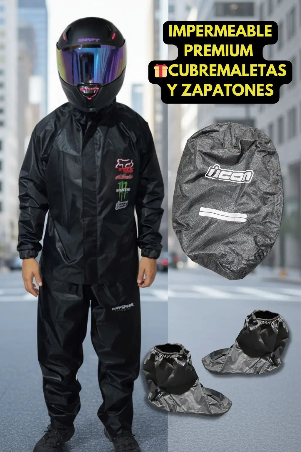 Impermeable Premium tipo colmena Monster/ iicon con refuerzo en muslos | Sin filtraciones Super cómodo.🎁GRATIS cubre maletas y zapatones